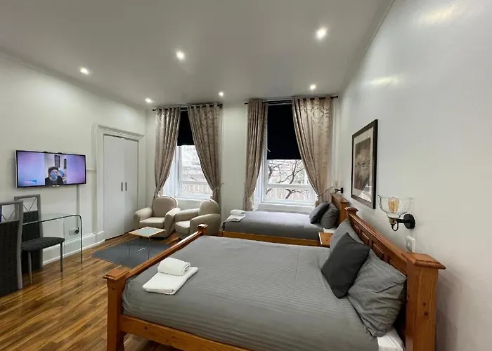 Dieses Apartment ist mit einer kompletten Küche ausgestattet, die eine Mikrowelle und einen Wasserkocher enthält, um Ihren Komfort zu gewährleisten. Das Restaurant The Shandon Belles verwöhnt Gäste mit europäischen Speisen und ist ungefähr 5 Gehminuten von diesen Unterkünften entfernt gelegen. Das City Centre Studios befindet sich nur wenige Gehminuten entfernt von der U-Bahn-Station St Enoch.